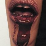 Blodbilleder er meget populære blandt fans og fans af vampyrsagaerne. Ved hjælp af sådanne tatoveringer bringer folk sig tættere på det ukendte, og derfor en så lokkende ondskabsverden.