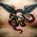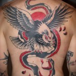 Eagle tatovering – dette er en slags klassisk tatovering, denne tegning er populær tidligere og er ikke mindre relevant i dag. Vi har samlet for dig i vores katalog med tatoveringsbilleder de bedste muligheder for færdige tatoveringer med ørne, som er lavet af førende tatoveringsartister..