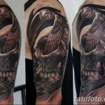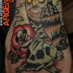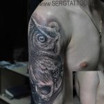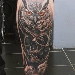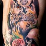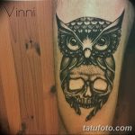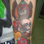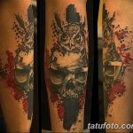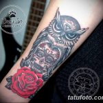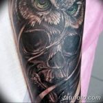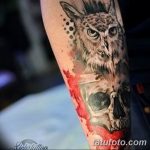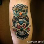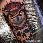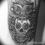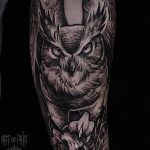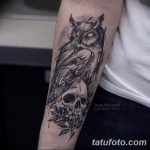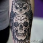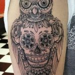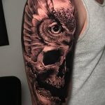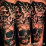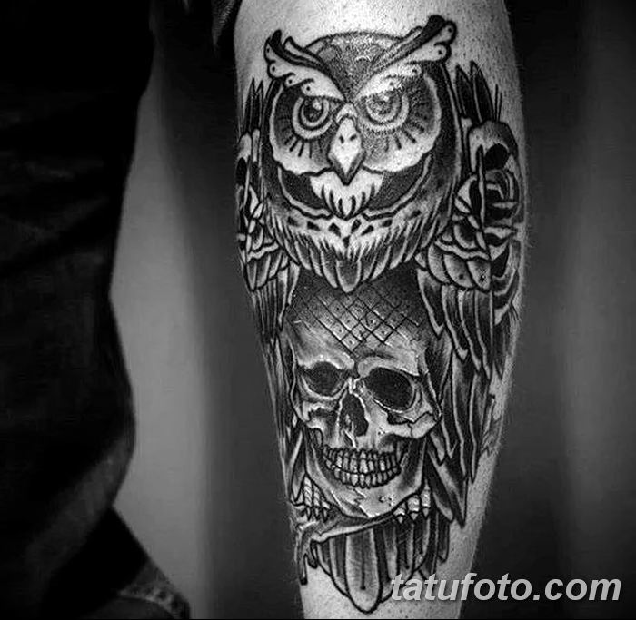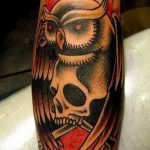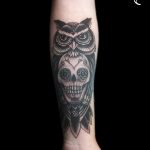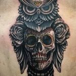 Foto af en ugletatovering med et kranium – originale eksempler på tatoveringsdesign på billedet