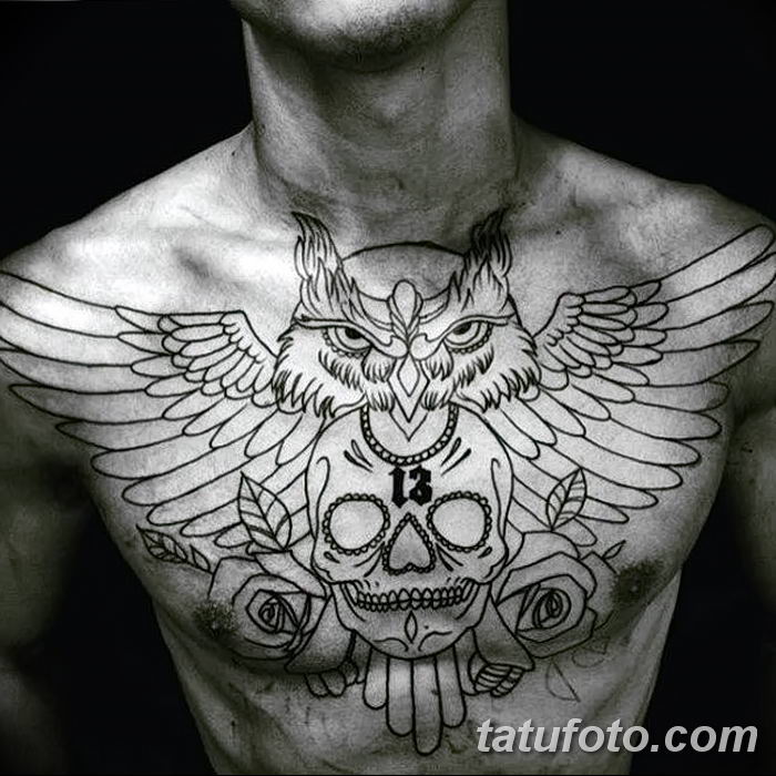 Kranium Bryststykke Tatoveringer Ugle Sukker Kranium Og Rose Tatoveringer På Bryst Foto – 2 – Foto – Tatovering Fantastisk