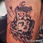Hele kraniet betyder død. Men som du ved, har mange mennesker forskellige holdninger til døden og hvad der vil ske efter den. En tatovering med dette billede betyder ofte død, genfødsel, sort magi og nogle gange endda held og lykke. Keltiske folk troede, at sjælen var låst inde i et kranium, mens de gamle azteker mente, at dette var en ærbødighed for deres afgåede slægtninge. I udenlandske fængsler giver en kranietatovering mening, at en person er farlig og klar til handling, og i SNG -landene identificerer bæreren af dette symbol sig selv som en tyv. På en eller anden måde har en ugle med en kranietatovering i mange kulturer en mørk og mystisk betydning..