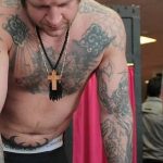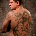 Den største tatovering på bagsiden. Atleten forsøger igen at bevise, at han ikke er bange for døden og ser fare i ansigtet.