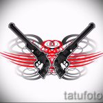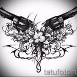 Pozivamo vas da vidite dizajna tetovaža revolvera, čije će vam ideje pomoći da oblikujete crtež svoje buduće tetovaže revolverom. Više informacija o ovoj temi možete dobiti u sljedećim materijalima: