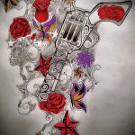 Skice tetovaže revolvera – zanimljiva verzija crteža za tetovažu s revolverom