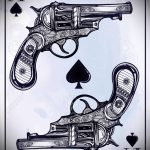 Također, revolver se može prikazati u kombinaciji s cvijećem, najčešće ružama. Ovo gledište naglašava oštrinu svjetonazora i nespremnost da se pomiri s drugima. Ponekad je moguće napraviti crtež s elementima života Divljeg zapada, nakon što je dobio neku vrstu zamrznutog kadra iz filma u žanru “Western”.