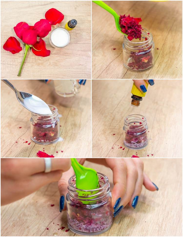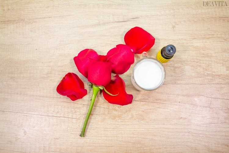 Okvetné lístky ruží sú zvlhčujúce a pomáhajú prirodzene zosvetliť odfarbené pery. Ich antibakteriálne vlastnosti tiež pomáhajú chrániť pery. Studené mlieko tiež pomáha pri zosvetľovaní, upokojuje pokožku a dodáva jej príjemný a jemný pocit. Tiež zvyšuje produkciu kolagénu, zatiaľ čo mätový olej pôsobí sviežo a čisto.