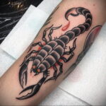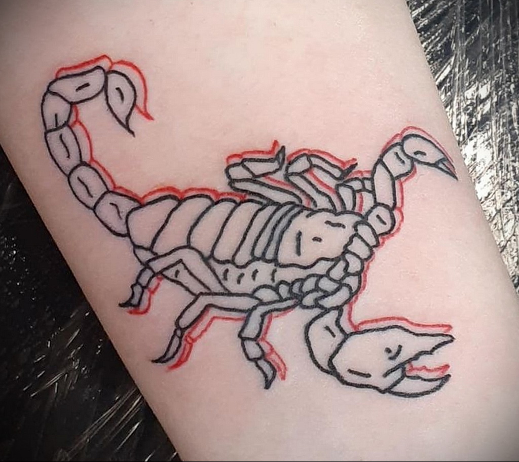 When applying, different colors are used, as well as the distinctive features of the pattern itself. If the scorpion is made in one color (in most cases black), and its claws are closed, then the owner of the tattoo is distinguished by a calm disposition, and in life it goes under the motto – the justice of every situation. Colors as bright as red or orange indicate that at many points a person can use qualities such as aggressiveness and anger. Raised paws to the top – the owner has high goals and is inclined to achieve the desired heights.