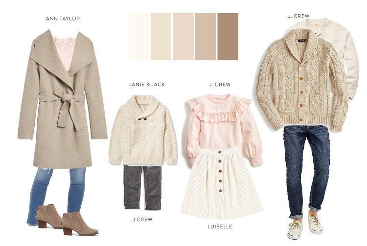 Aj tu platí pravidlo: Zlaďte farby rodinných outfitov. Najlepšie je zvoliť neutrálnu základnú farbu, partnera zodpovedajúcej farby a akcentovú farbu.