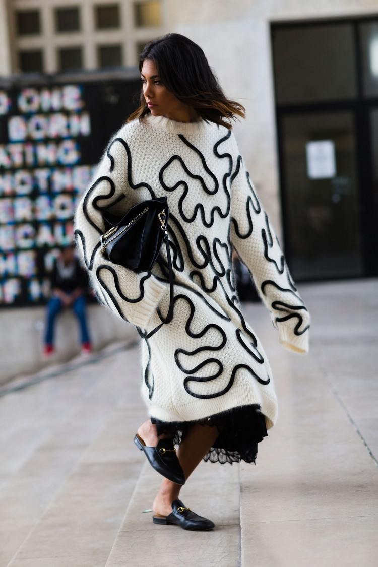 Pletené šaty sú len skutočnými všeliekmi a pomýliť sa pri stylingu je takmer nemožné. V kombinácii s teniskami máte chladný každodenný vzhľad a čižmy s hadím vzorom sú ideálne na dlhú párty noc s dievčatami. Kovbojské čižmy na členkové motorkárske topánky vytvoria štýlový a vzrušujúci oddych a dodajú vášmu oblečeniu ležérny a uvoľnený nádych. Aby boli široké pletené šaty v nadrozmernom vzhľade o niečo elegantnejšie a objímajúce postavu, môžete ich skombinovať s výrazným bedrovým pásom.