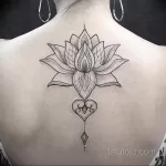 وشم اللوتس مع ماندالا يصور هيكل العالم يعني انتصار العقل على الفوضى والتنوير والسعي لتحقيق الكمال..