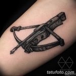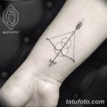 دائمًا ما يكون معنى السهم الموضح على الجسم غامضًا. مع الأخذ في الاعتبار المعنى الرئيسي للوشم القوس والسهم ، يمكننا أن ننسبه إلى رمز القوة الذكورية. حتى في العصور القديمة ، كان السهم يُعتبر جزءًا لا يتجزأ من كل معيل للأسرة وصياد. كان يعني: