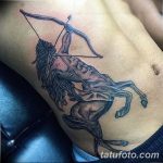 يمكن اختيار مثل هذا الوشم من قبل شخص ولد تحت علامة القوس. في هذه الحالة ، ترمز إلى علامة البروج الخاصة به ، والتي تتميز بقوتها. إذا تم الجمع بين هذا الوشم وعناصر نارية ، فهو رمز للقوة والطبيعة العاطفية للشخص..
