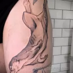 - ينطبق الشيء نفسه تمامًا على ثعلب الماء على ظهره – مع الحيوان ، يمكنك تكوين تركيبة ضخمة مع الكثير من التفاصيل ، أو ببساطة تصوير حيوان ممتد على طول العمود الفقري. بالمناسبة ، الخيار الأخير سيبدو رائعًا على ظهر المرأة..
