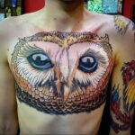 يتحدث الوشم الملون لبومة عند الرجال عن السحر ، وهو موقف سهل في الحياة. يشير الوشم المصنوع بألوان داكنة إلى ميل إلى الانطواء..