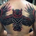لجعل الوشم يبدو جميلًا ، عليك أن تجد المكان المناسب لذلك. ستبدو البومة ذات الأجنحة المنتشرة طبيعية على ظهرها أو صدرها.