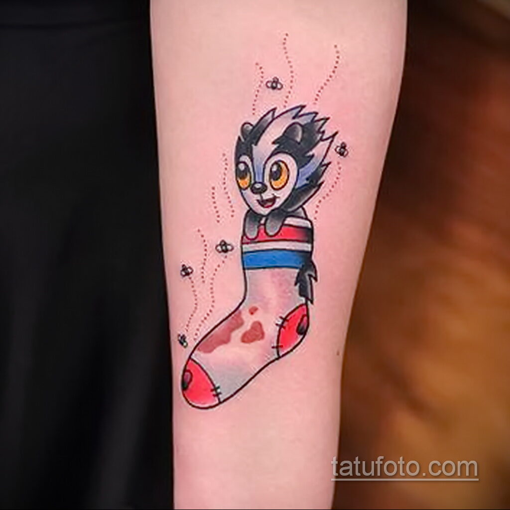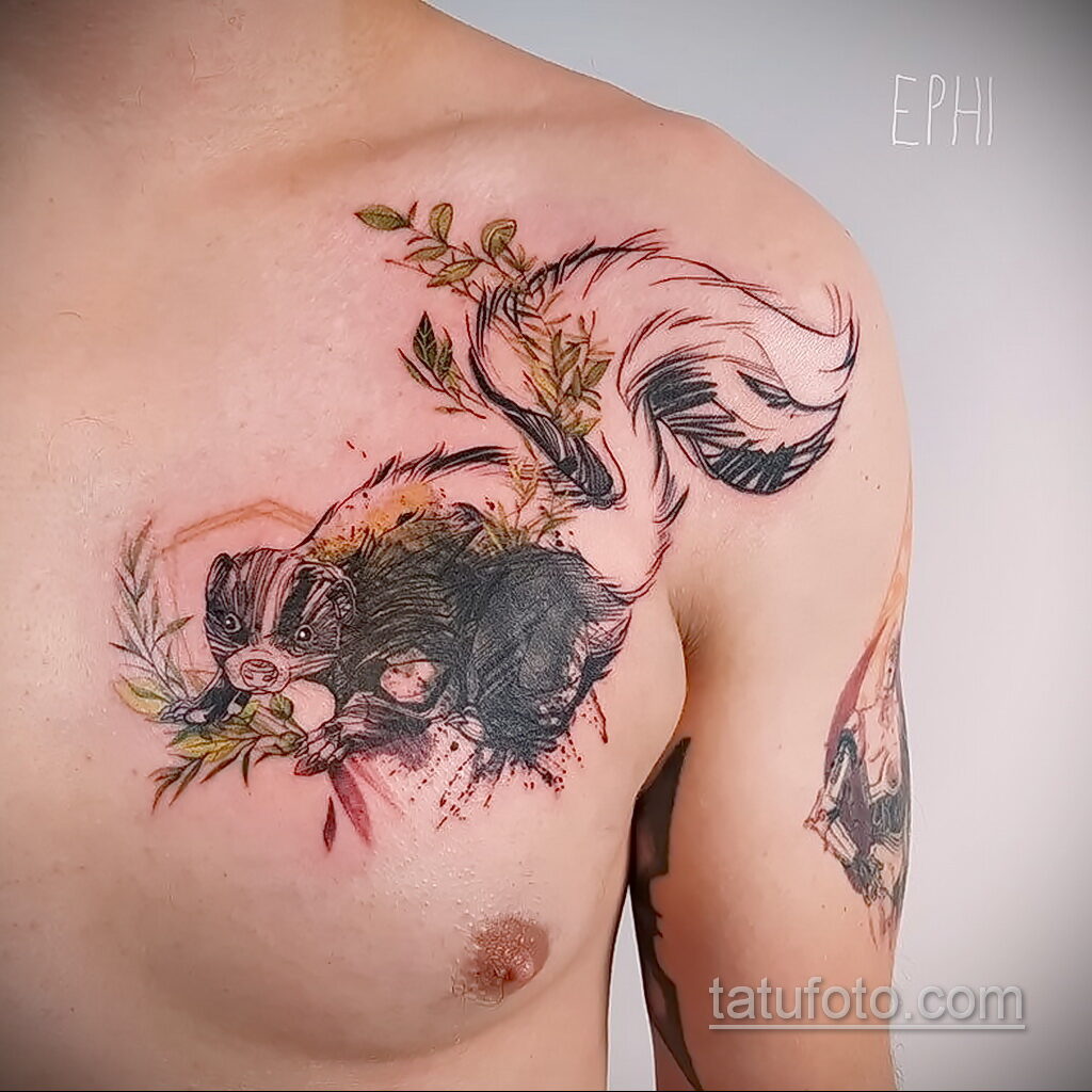 يقدر Skunk بشدة حريته. إنه مستقل ، قادر على الاعتناء بنفسه. لذلك ، فإن صورة الثدييات على الجسم ترمز إلى استقلال صاحب الوشم..