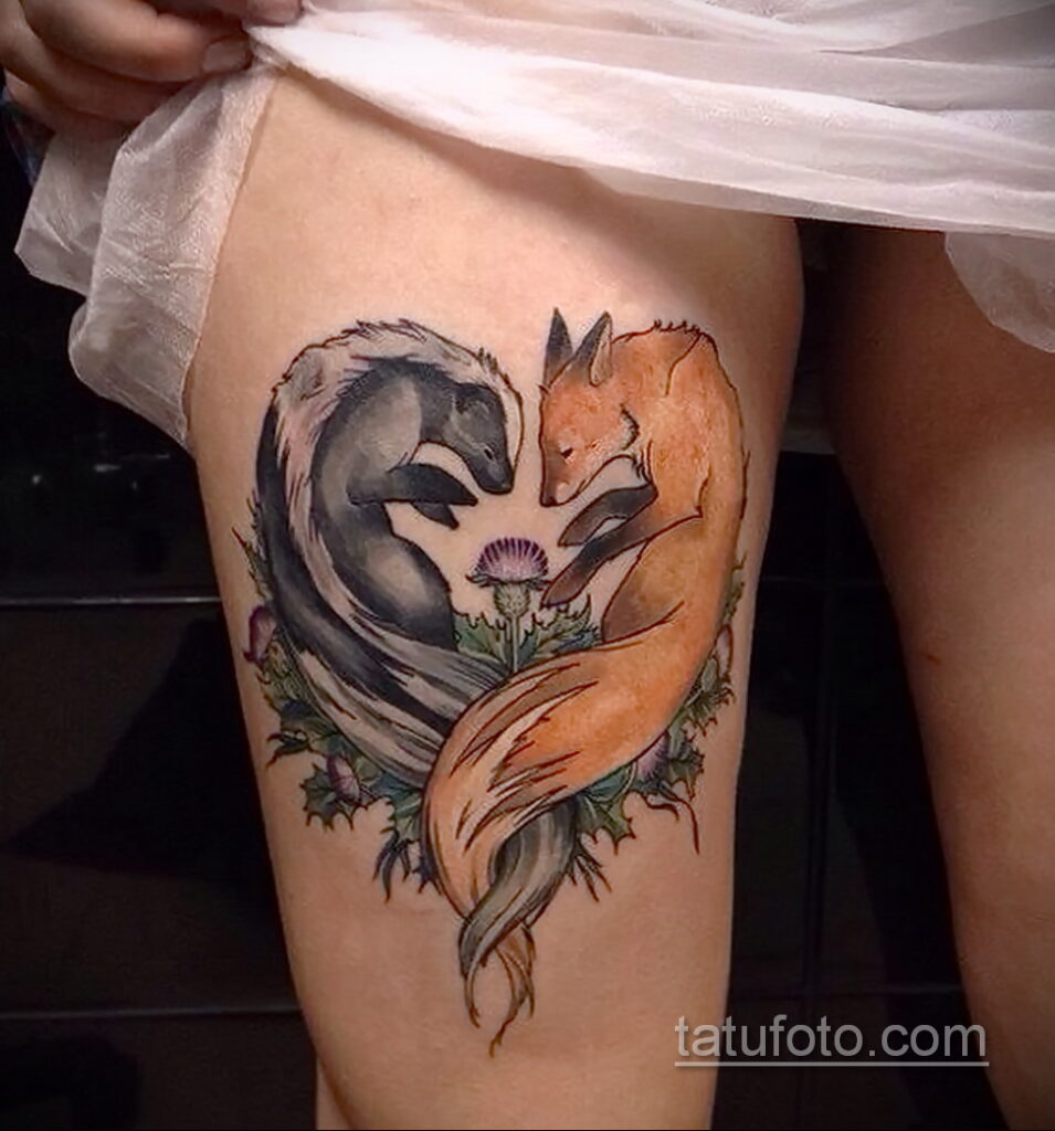 يحمل الوشم المعنى التالي: يرمز الظربان إلى الشجاعة ، والكاريزما ، والاستعداد للوجود بشكل مستقل ، للدفاع عن نفسه. صاحب مثل هذه الصورة هو المسؤول ، هي نفسها تقرر ما يجب القيام به. كلماتها وأفعالها لها وزنها. لا تحاول أن تخبرها كيف تعيش. لن تستمع أبدًا ، لأنها ضالة. مثل هذا الجمال يشعر بمهارة بالتلاعب ، ولن يسمح لنفسه بالسيطرة عليه. حتى الحب لا يستطيع السيطرة على العيون وتغطيتها.
