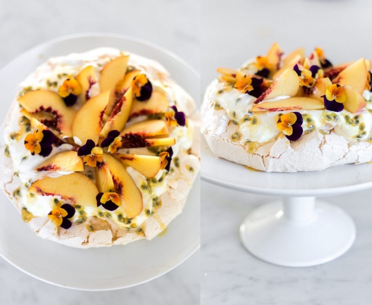 Prekvapte rodinu ovocným dezertom. Recept na koláč „Pavlova“ s marakujou, broskyňami a jedlými fialkovými kvetmi je veľmi jednoduchý a vhodný aj pre začiatočníkov. Potrebujete nasledujúce prísady:
