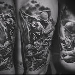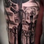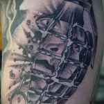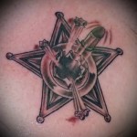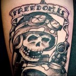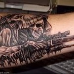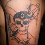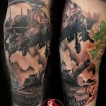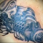 В това отношение има една интересна особеност. Изображения на съвременни видове оръжия почти никога не се намират. Младите хора предпочитат оръжия и военна техника в ретро стил пред най -новите танкове, кораби, подводници, пушки, картечници. Древно оръдие, военен кораб от края на XIX-XX век, танк от Великата отечествена война, очевидно носят романтичен чар, позволяват ви да се докоснете до миналото, да забравите истинското военно ежедневие, лишено от такова приказен усет. Античните кръстосани пушки все още са едни от най -разпространените армейски татуировки, но татуировката с атомна експлозия сред военните изобщо не се прави..