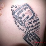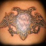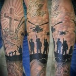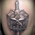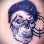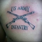 За разлика от затворническите татуировки, които имаха сложна, но ясна система, където на всяка рисунка беше определено определено съдържание и всеки елемент носеше някаква информация за позицията на собственика на татуировката в престъпната йерархия, армейските татуировки нямаха строга степен , те не са направени според неписания закон, а по призива на сърцето. Прилагайки татуировка със знака на своето подразделение, войникът искаше да подчертае лоялността си към армейското братство.