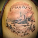 По време на Великата отечествена война бойците прилагат патриотични татуировки, подчертавайки лоялността към Родината и вярата в победата.