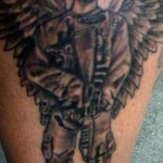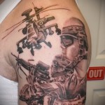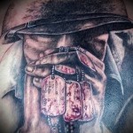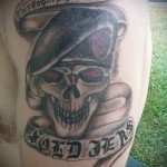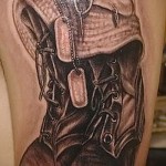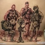 Причините, поради които военните обичат да си правят татуировки, в много отношения са подобни на причините, които насърчават моряците да го правят. Войници от всички клонове на сухопътните войски, както и моряци (армия и цивилни), принадлежат към група с висок риск, тъй като животът им е постоянно застрашен. Те рискуват да умрат далеч от дома или да бъдат сериозно ранени. Затова военните се опитват да получат уникална татуировка, която, ако е необходимо, би помогнала за установяване на тяхната самоличност. В допълнение към тази чисто утилитарна задача, татуировката изпълнява магическа функция: набодена е за късмет, тъй като трябва да предпазва войника от нараняване и смърт..