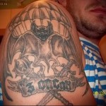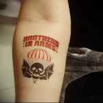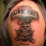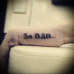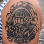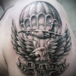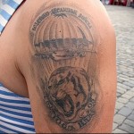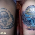 Образът на войник от специалните части или войник във въздуха, напълно покрит с татуировки, изразяващ гордостта си от принадлежността към елита на въоръжените сили, стана легендарен. Надписите „За въздушнодесантните сили“ или „бригадир“ на рамото, допълнени с художествена татуировка на целия гръден кош, са същият атрибут на истински парашутист, подобно на прочутата синя барета. След войната в Афганистан парашутистите са задължени да прободат кръвната си група. За мнозина тази татуировка спаси живота..