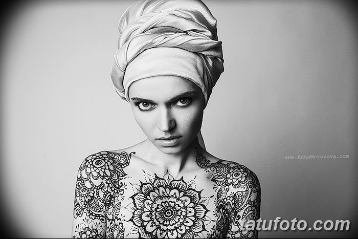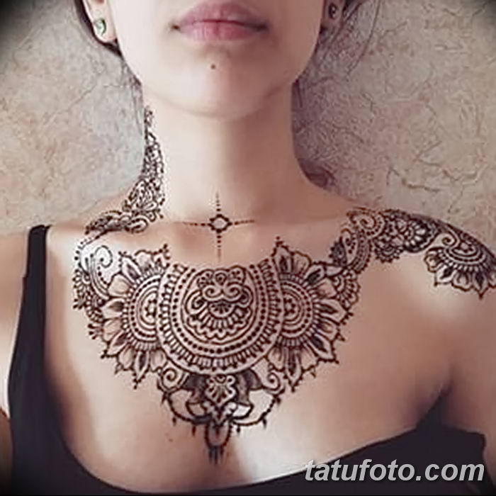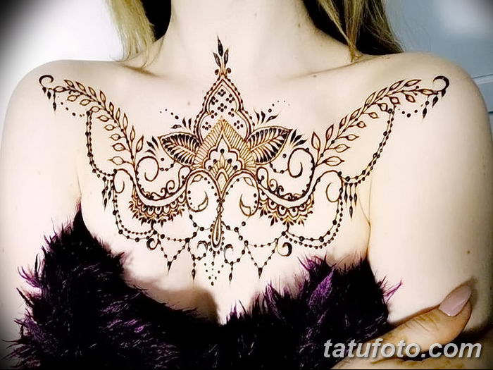Мехенди на гърдите (рисунки с къна) – информация и фотопримери на готови рисунки