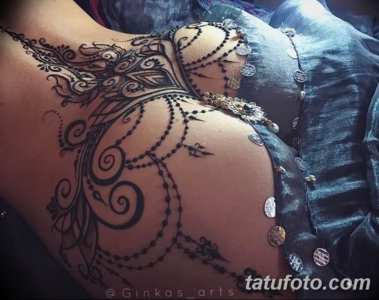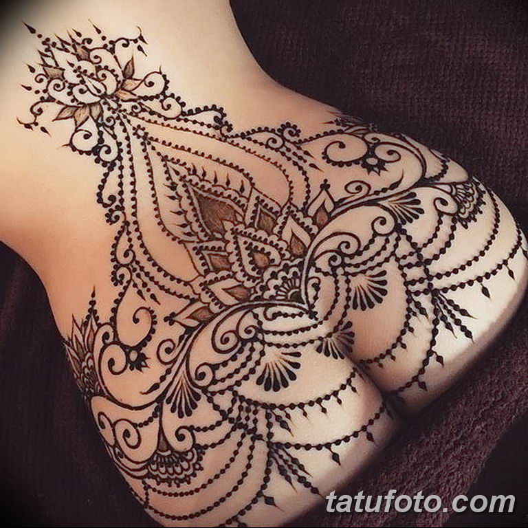 Мехенди в долната част на гърба (рисунки с къна) – информация и примери за снимки