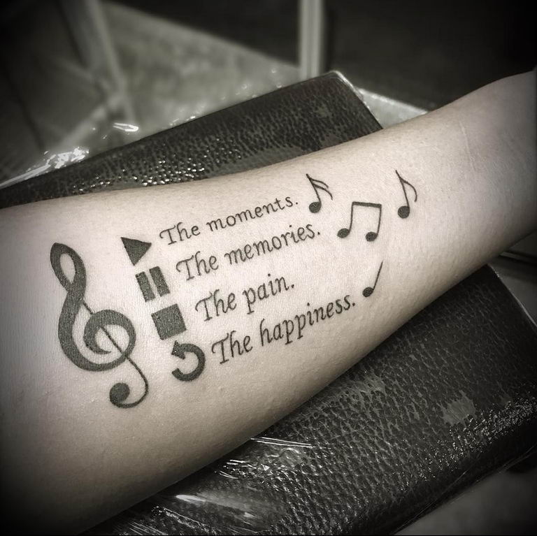 Снимки на музикални татуировки – колекция от готови дизайни на татуировки върху снимката и интересни факти за характеристиките