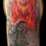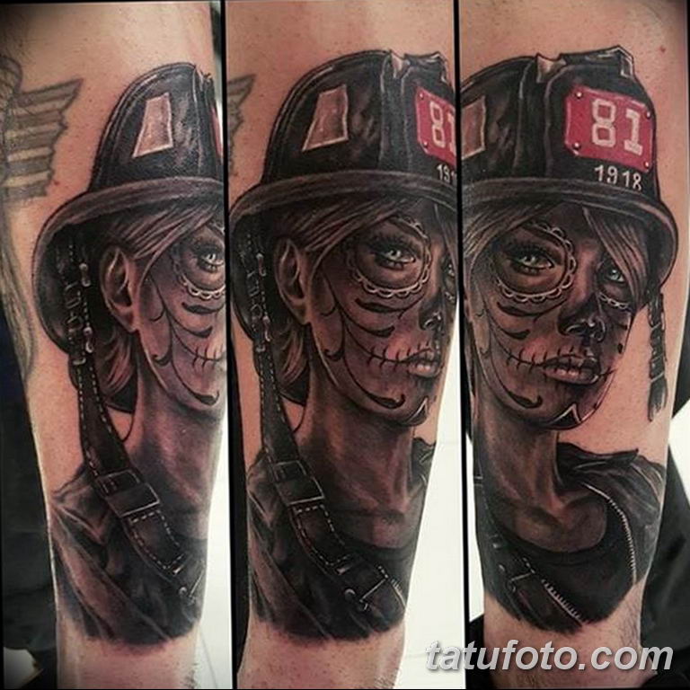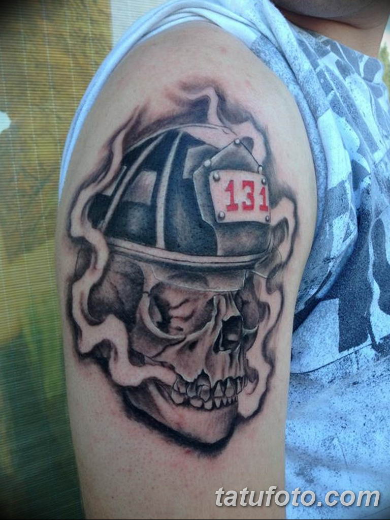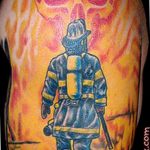 Изображението на пожарникар на фона на черепа, обозначаващо лицето на смъртта, е друга версия на татуировката. В края на краищата, освен пожар, пожарникарите предизвикват смъртта с всяко заминаване.