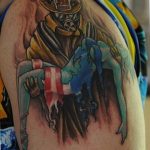 Често изображения на герба на единица или министерство, на което е подчинено, се изобразяват на фона на флага на родната страна. Това прави татуировката особено патриотична..