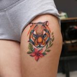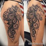 2. Хълбоци. Рисунките на бедрата винаги могат да бъдат скрити под дрехите. Трябва обаче да се има предвид, че с остър набор и загуба на тегло такива татуировки могат да се деформират. Обикновено изображението се нанася симетрично върху двете бедра от вътрешната, външната и страничната страна..