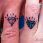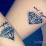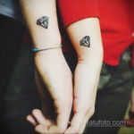 Диамантът може да се припише и на символа на вечната любов, поради което влюбените двойки използват диамант за сдвоени татуировки. Как ще изглежда скицата, всичко зависи от въображението на майстора и вашето. С помощта на диамант мъж и жена се стремят да предадат вечния съюз на любовта си.