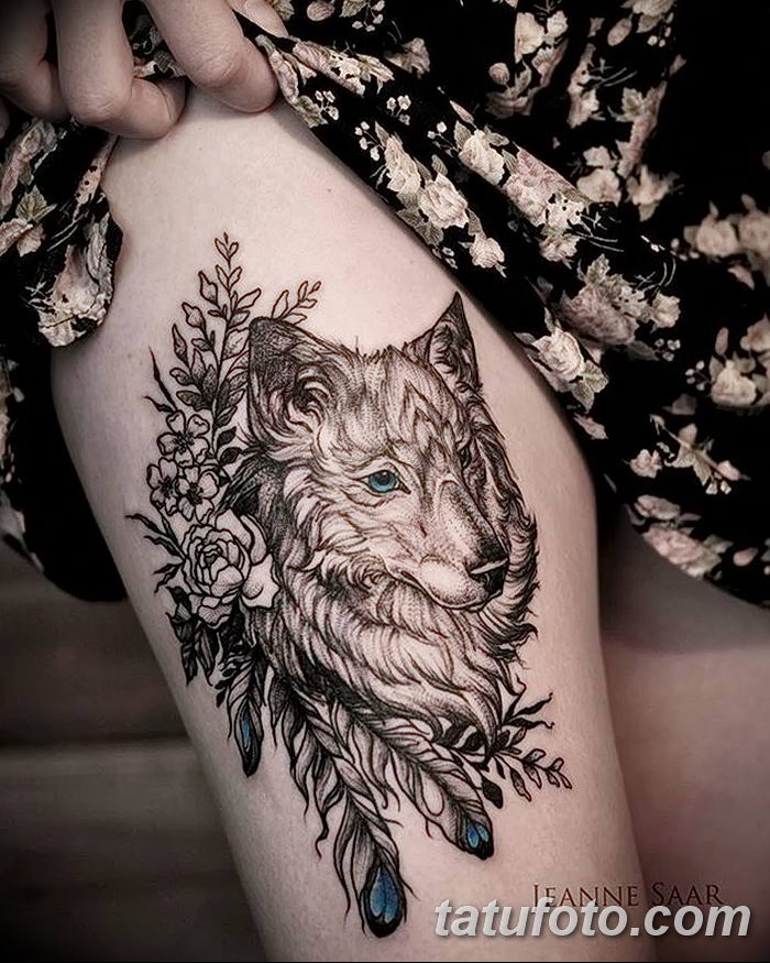 Примери за снимки на татуировка на вълк и пера: