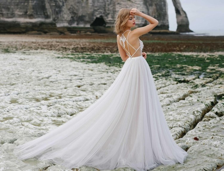 A Svadobné šaty pre princezné sa vyznačuje predovšetkým svojim priliehavým topom a veľmi širokou rozšírenou sukňou. Sukňa v tvare zvona začína v páse a zvyčajne sa nosí s obručovou sukňou. Objem svadobných šiat môžete určiť podľa obvodu krinolíny.