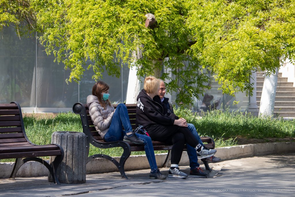 Zdjęcie dziewczyny w masce medycznej na ławce nad morzem – 05.09.2020 – Street tattoo – tatufoto.com