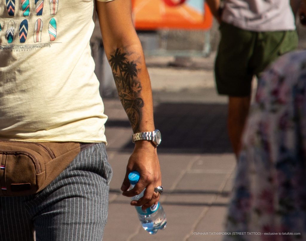 Tatuaż z palmą na dole lewej nogi dziewczynki