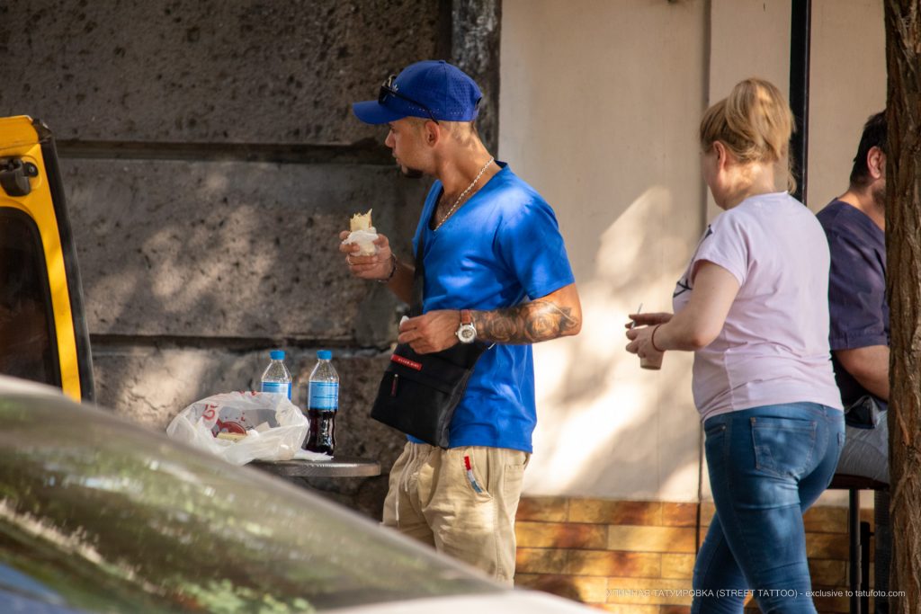 A ta dziewczyna jest wyraźnie uzależniona od tatuaży. Zostałem złapany na ganku salonu tatuażu – najwyraźniej wyszedłem się wyspowiadać. Nawiasem mówiąc, są pytania do mistrza!)