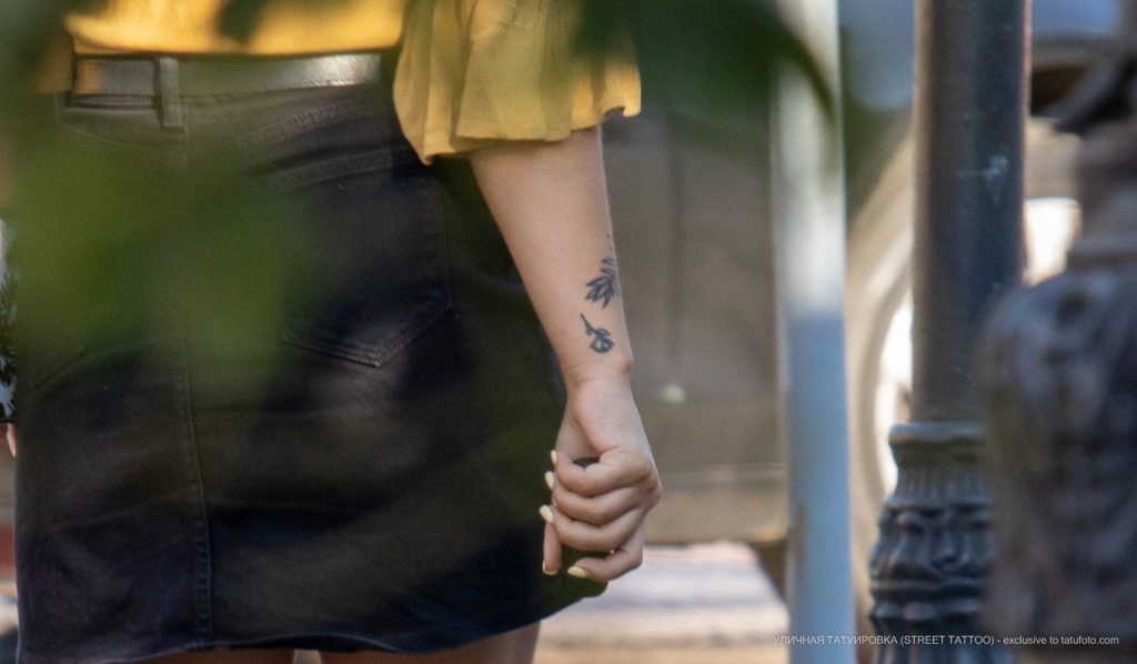 Kwiatowy tatuaż na prawym nadgarstku dziewczyny