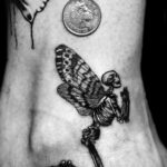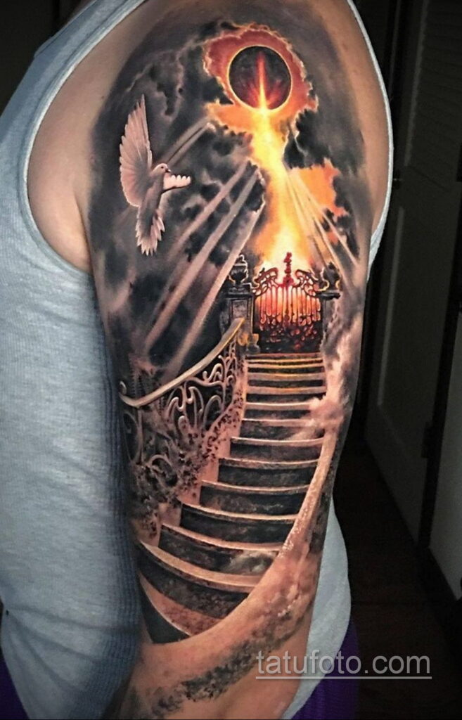 The meaning of the tattoo depends on the applied pattern. For example, a praying angel means that a person often turns to God and trusts in his help. In a religious sense, such a drawing can symbolize paganism. Despite this, the bearer of the tattoo emphasizes the connection with the Higher powers. Modern girls choose a drawing with angel wings. Chubby angels with golden hair mean the purity and youth of girls.