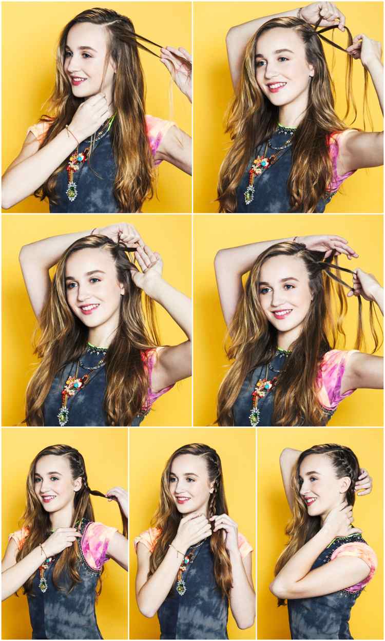 1. Rozdeľte vlasy na dve časti a zapleťte dva voľné vrkoče.
