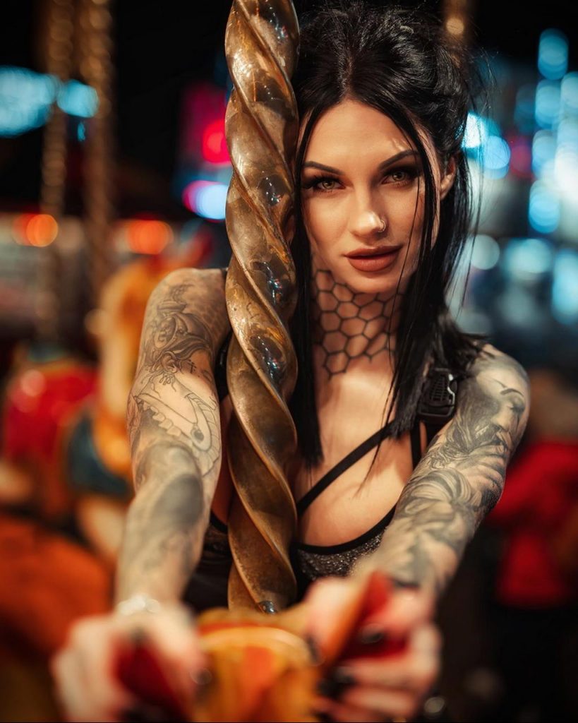 Dziewczyna udaje się nie tylko mieć tatuaże na ciele i wychowywać syna – jej chwytliwy i oczywiście seksowny wygląd pozwala jej jako modelce zarobić całkiem przyzwoite fundusze, które pozwalają jej dużo podróżować i zachwycać miłośników tatuaży świeżymi zdjęciami siebie z różnych części świata. Naturalnie ośmielamy się sądzić, że ta mama będzie zadowolona z tatuażu 8 marca.