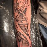 A teraz zapraszamy do obejrzenia zdjęć przykładów projektu tatuażu z łańcuchem DNA, który jest zwykle używany w złożonych projektach tatuażu, które mają głęboki osobisty sens..