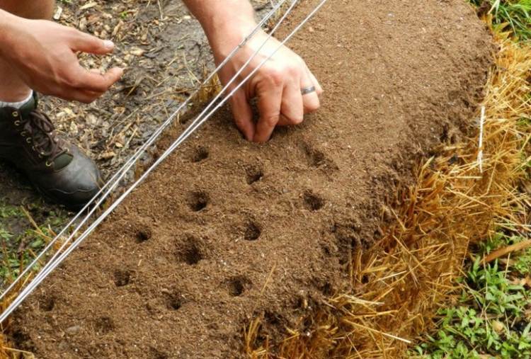 Ak na výsadbu použijete hotové sadenice, úplne postačí, ak do slamy vyvŕtate malé otvory. Na to môžete použiť výsadbovú stierku. Sadenice sa potom zasadia do týchto otvorov, pričom sa neodstráni všetka pôda okolo koreňového balu. Potom otvor naplňte sterilnou zmesou pôdy a súčasne zakryte otvorené korene. Môžete tiež zasadiť semená priamo. Za týmto účelom najskôr na balík rozsypte 2,5 až 5 cm vysokú vrstvu zeminy. Akonáhle semená vytvoria korene, začnú rásť priamo do slamy.