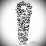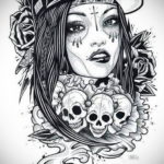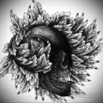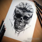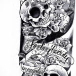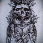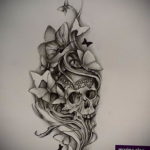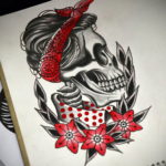 Motyw czaszki we współczesnych tatuażach jest niezwykle popularny nie tylko wśród mężczyzn i brutalnych osobowości. Rysunek czaszki jest dość mocnym symbolem o głębokiej filozofii i elastycznym znaczeniu, co pozwala na użycie go zarówno w osobnym, akcentowanym rysunku tatuażu, jak i dopasowanie do złożonych kompozycji, podkreślając znaczenie tego fatalnego elementu różnych kultur..
