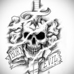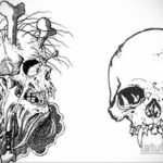 Tutaj możesz zobaczyć szkice tatuażu czaszki, które regularnie aktualizujemy w galerii – na samym dole strony. Zbieramy dla Ciebie nie tylko rysunki, ale grupujemy je według kategorii i ułożonych rysunków, na przykład: szkic czaszki ze skrzydłami, sztylet lub tatuaż czaszki byka i tak dalej..