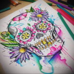 Oldschoolowy styl lub wizerunek cukrowej czaszki pozwolą Ci użyć więcej kolorów, sprawią, że tatuaż czaszki będzie naprawdę jasny.