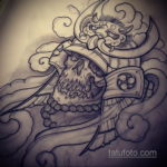 kultury orientalne przez długi czas rozważano czaszkę – miejsce zamieszkania duszy stworzenia, jego wewnętrzną siłę i wiedzę. Na podstawie tych informacji rozsądnie jest interpretować rysunek czaszki w tatuażu jako symbol życie, nie znak śmierci.